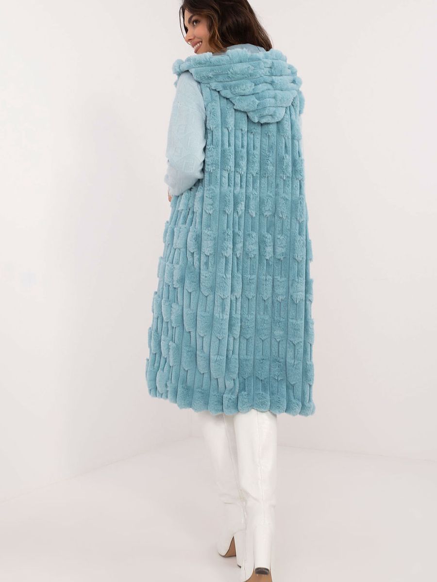 Világos türkizkék bundás mellény