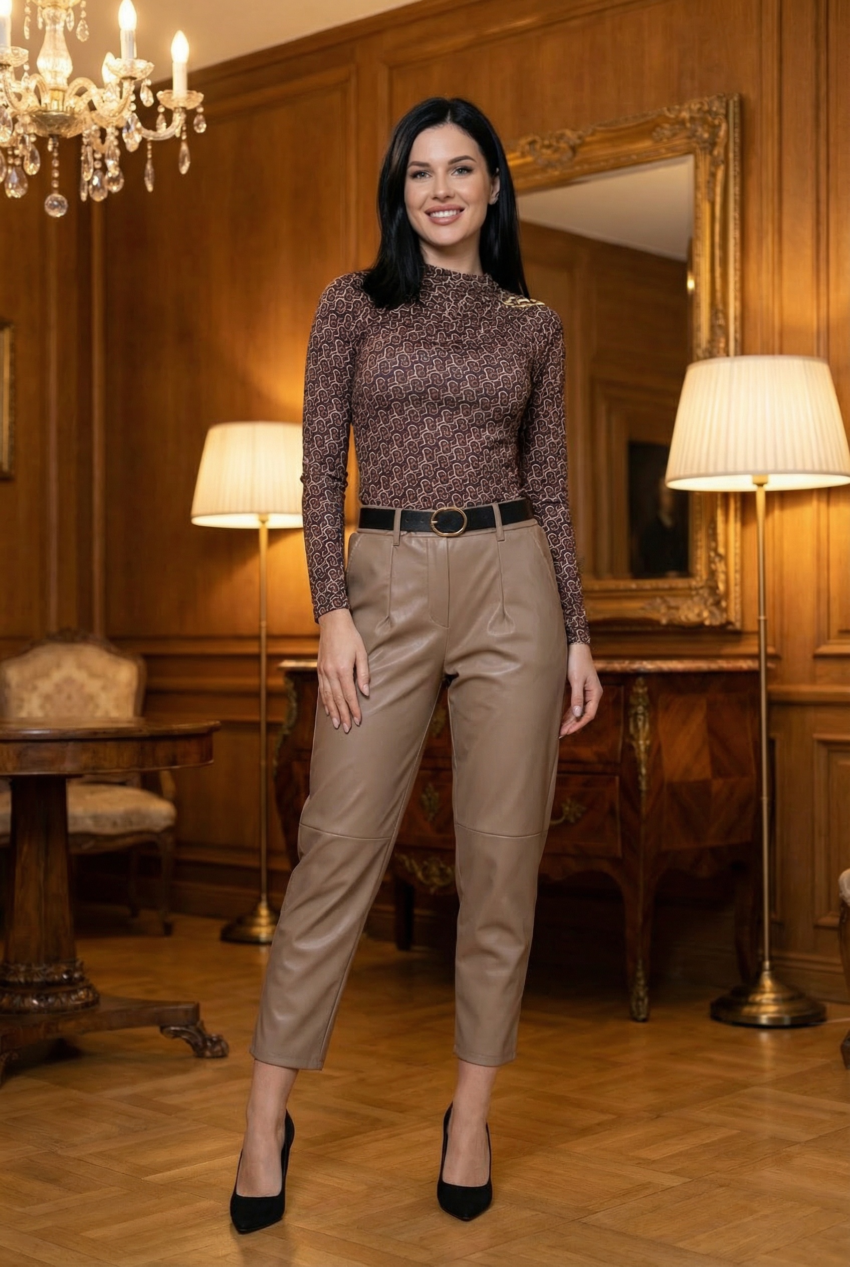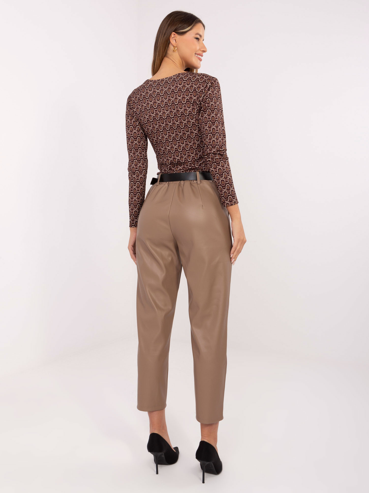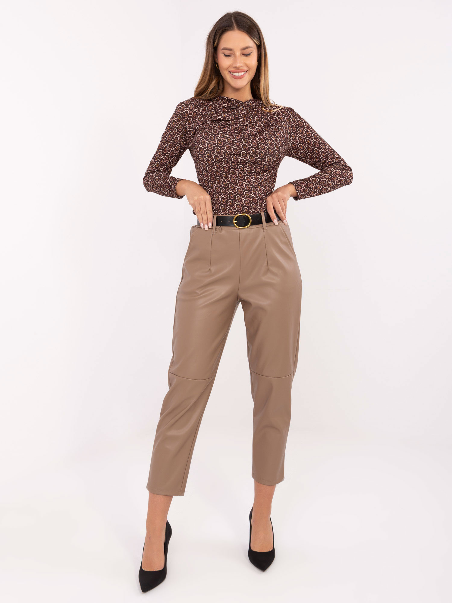 Világosbarna ekobőr nadrág övvel
