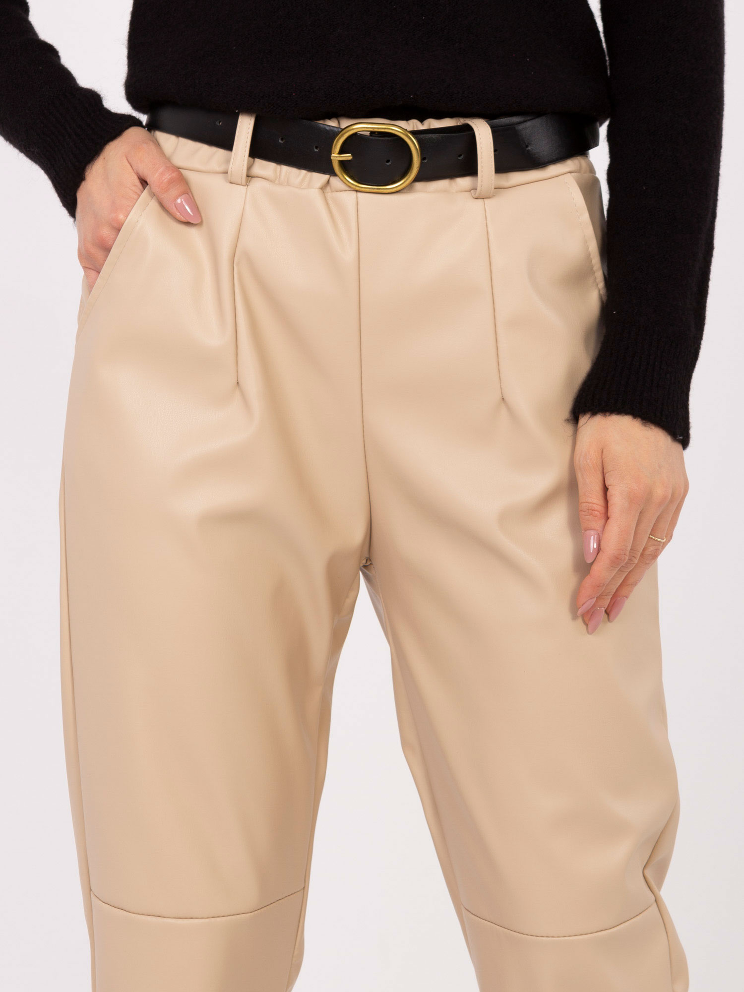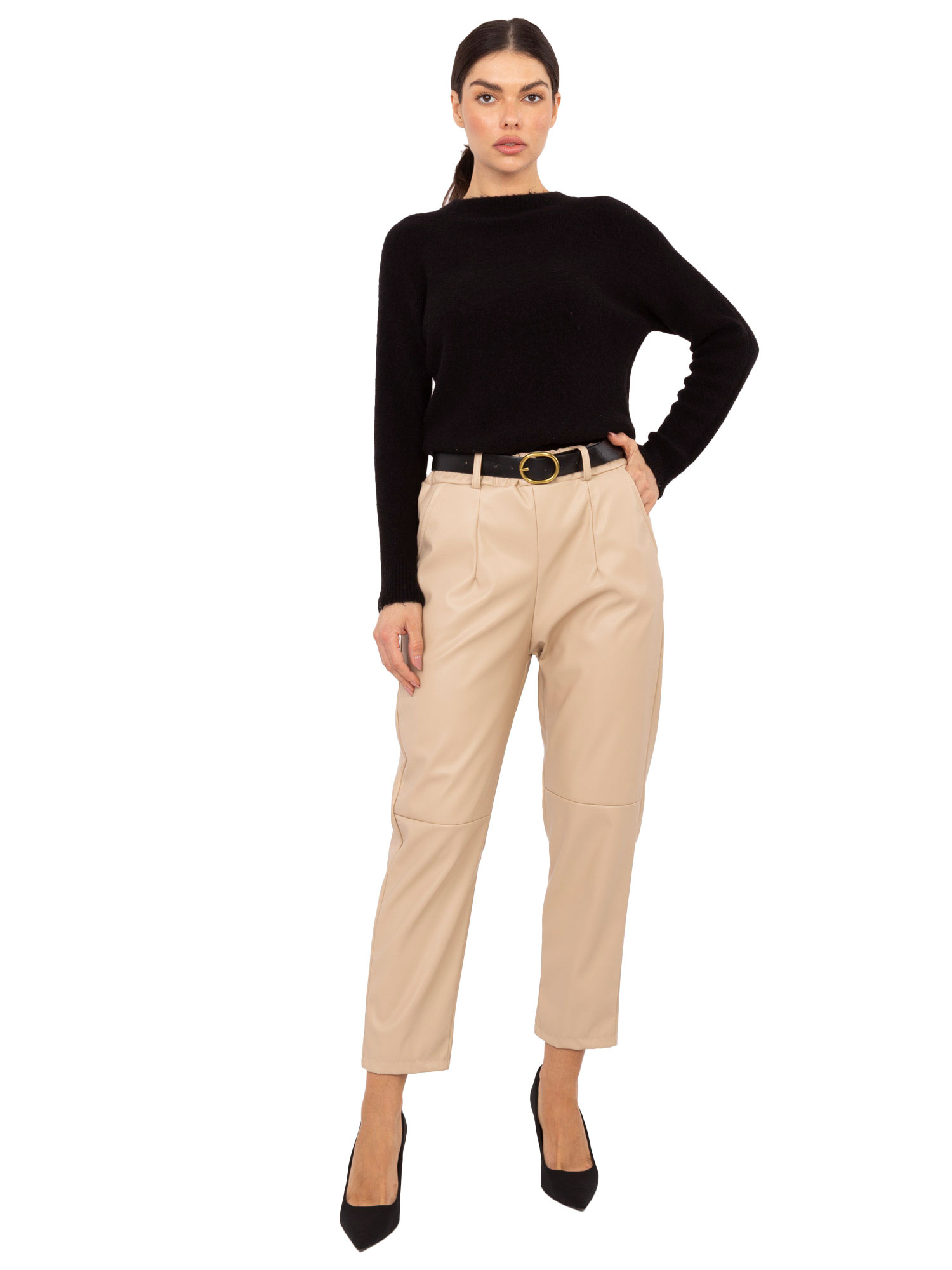 A Rue Paris magas derekú, műbőr hatású női nadrágja modern, elegáns és kényelmes választás a hétköznapokra vagy akár munkahelyi megjelenéshez is. A letisztult, egyszínű felület és a lágyan szűkülő szárak harmonikus, karcsúsító hatást keltenek, miközben a puha, rugalmas anyag kényelmes viseletet biztosít egész nap. A nadrág meleg, vékony béleléssel készült, így hűvösebb időben is kellemes tartást és komfortot nyújt.