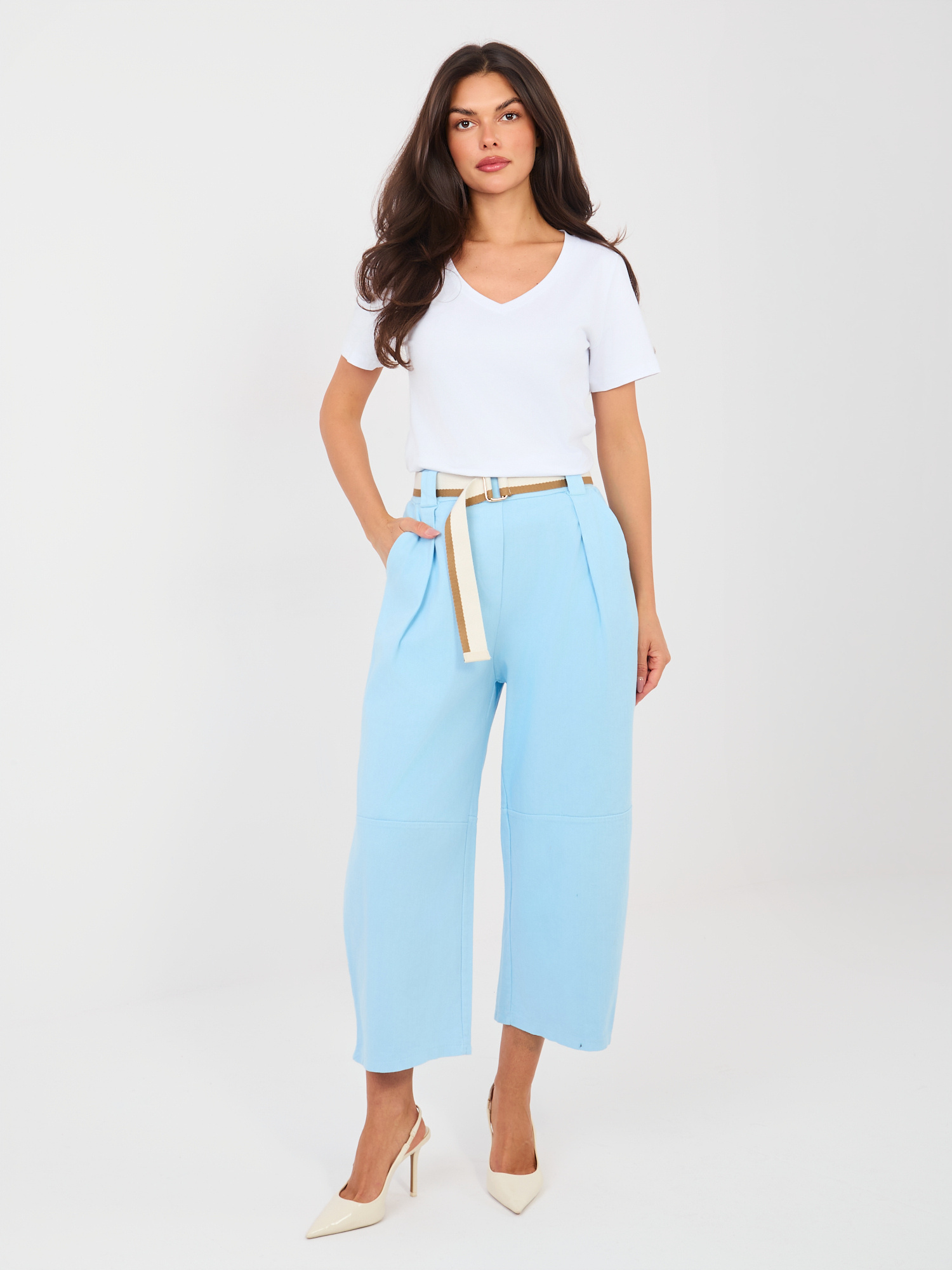 Világoskék culotte nadrág övvel