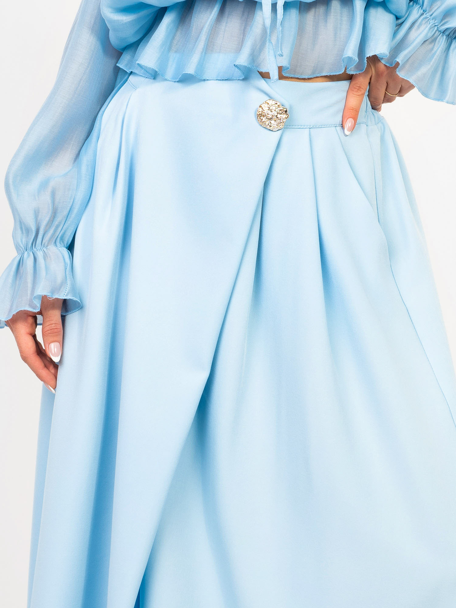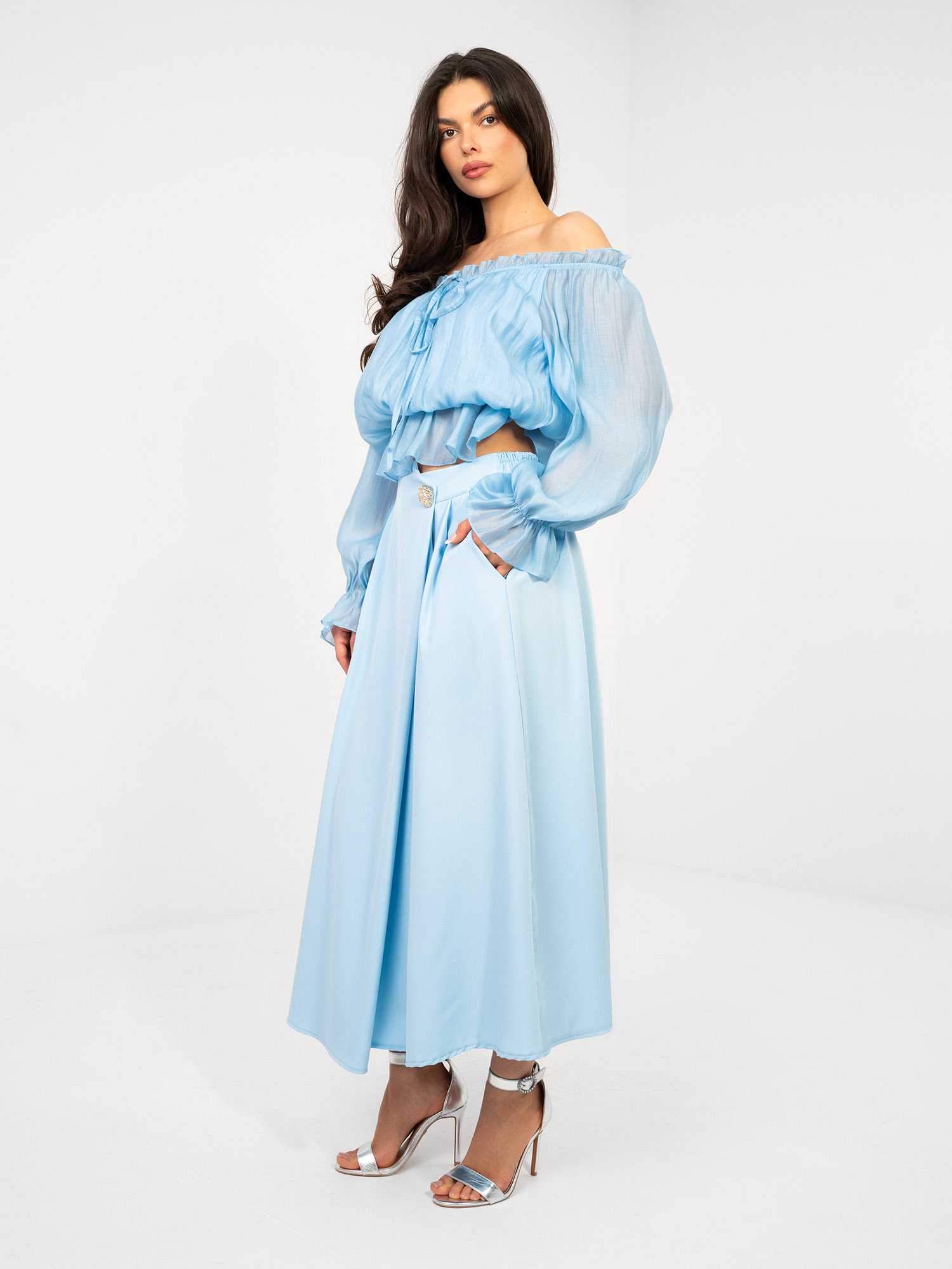 A Italy Moda midi szoknyája letisztult eleganciát és kifinomult megjelenést kínál, amely könnyedén illeszkedik a mindennapi és alkalmi öltözködéshez egyaránt. A sima felület és a klasszikus szabás időtálló stílust képvisel, míg a finoman elhelyezett gombok egyedi, nőies részletként teszik különlegessé. A praktikus zsebek tovább növelik a kényelmet, így ez a darab nemcsak esztétikus, hanem funkcionális választás is. A midi hossz elegáns vonalvezetést ad, amely szépen nyújtja az alakot, így ideális munkahelyi megjelenéshez vagy visszafogott alkalmi összeállításokhoz is.