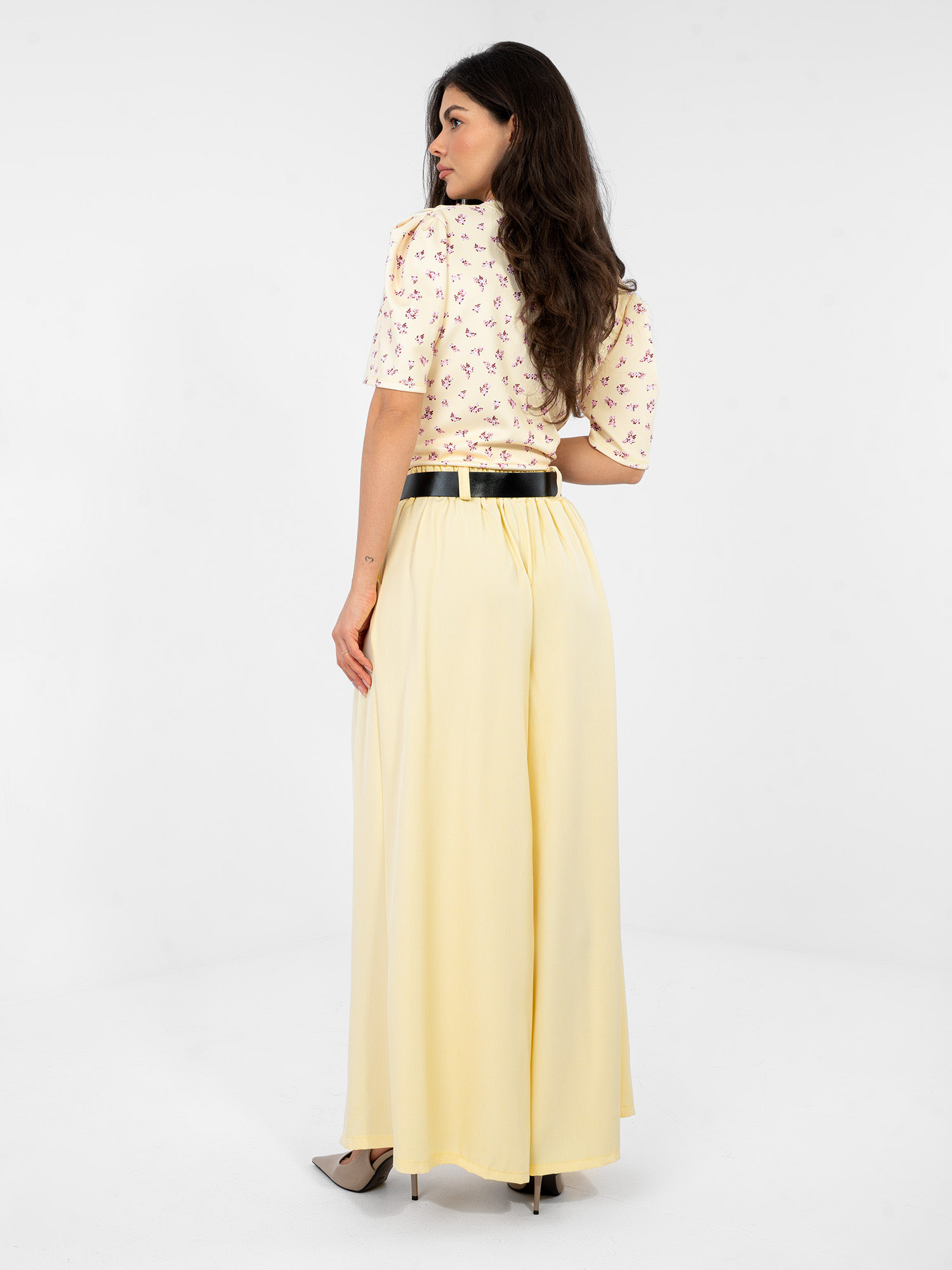 Az ITALY MODA elegáns, hosszú palazzo nadrágja tökéletes választás mindennapi viselethez, munkába vagy alkalmi megjelenéshez. A könnyed, lágy esésű viszkóz anyag rendkívül nőies hatást kelt, a bő szárú fazon pedig optikailag nyújtja a lábakat és kecses sziluettet ad. A magasított derékrész kényelmesen követi a testet, a hozzá tartozó öv pedig tovább formálja az alakot.
