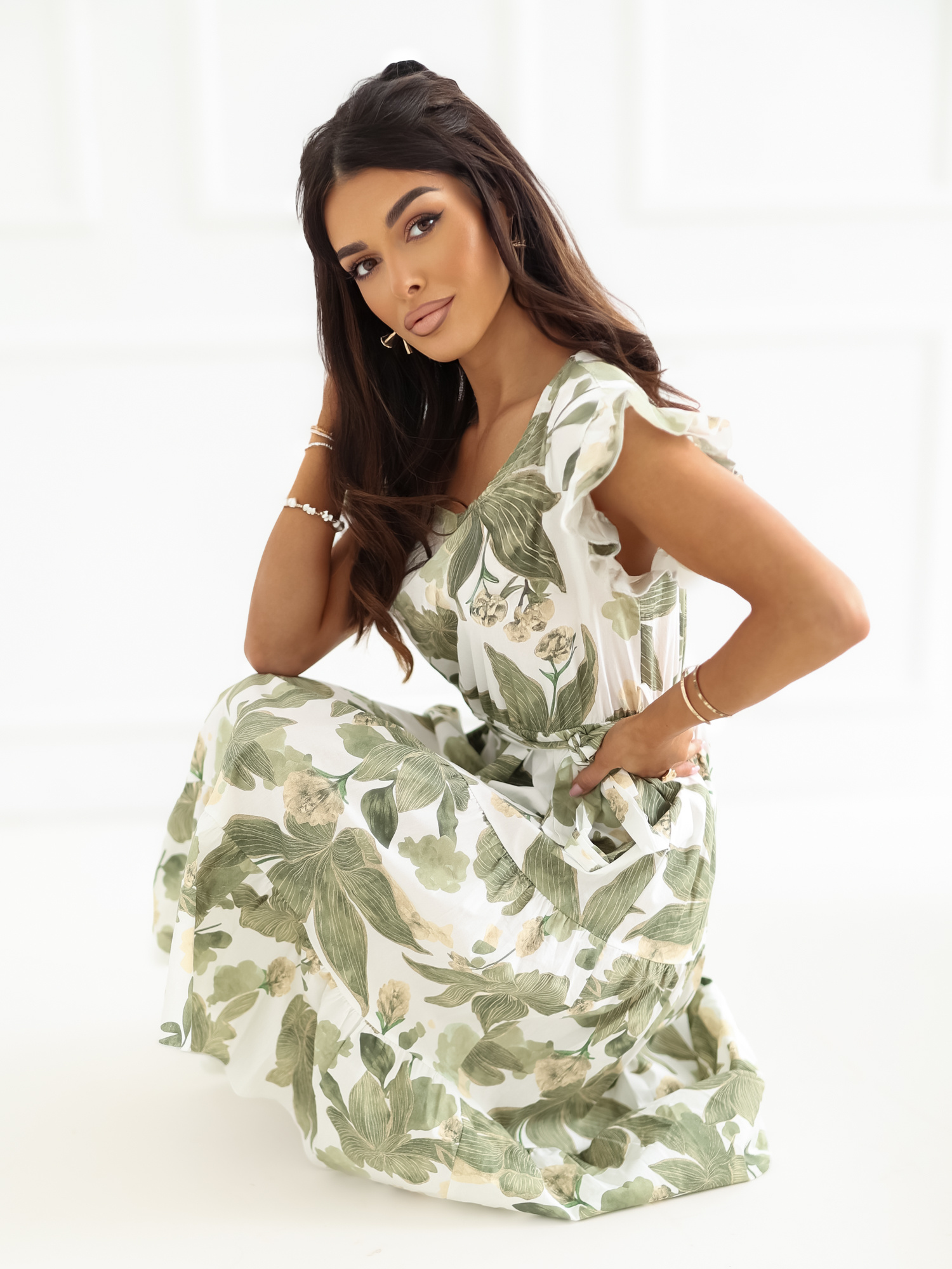 Az Italy Moda nyári midi ruhája könnyed nőiességet és természetes eleganciát kínál, amely tökéletes választás a mindennapokra. A bővülő szabás lágy esést biztosít, miközben szépen kiemeli a derekat és harmonikus sziluettet formál. A kerek nyakkivágás és a rövid ujjú kialakítás letisztult, könnyen viselhető megjelenést ad, amelyet a fodros részletek tesznek játékossá és nőiessé. A deréknál elhelyezett öv finoman hangsúlyozza az alakot, így a ruha egyszerre kényelmes és stílusos választás a hétköznapokra.